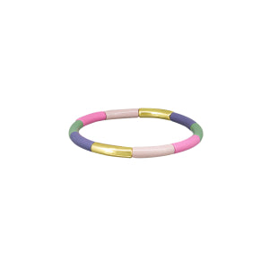 One size fits all elastic bracelet with enamel finish.
